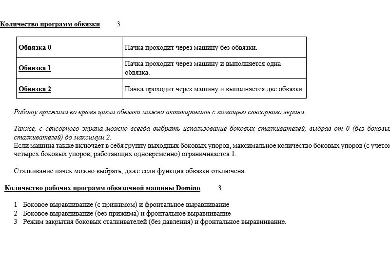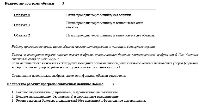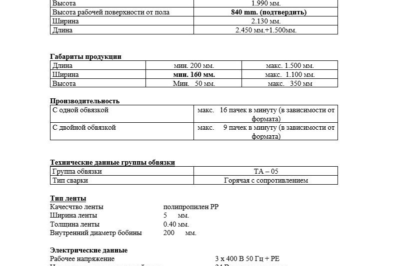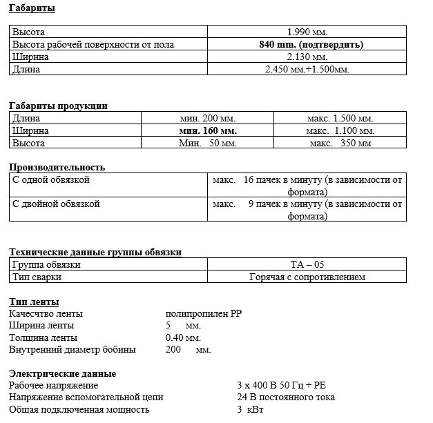 * Технические характеристики обвязочной машины ниже: